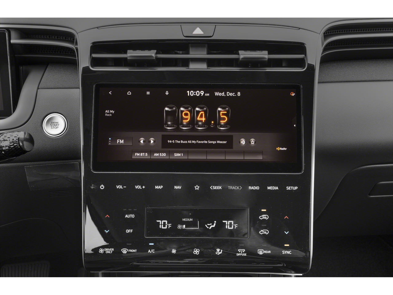 - Radio: Bose Premium w/AM/FM/HD/SiriusXM Audio System -inc: 10.25" color touchscreen w/onboard navigation and traffic flow including incident data via HD radio (HERE) (AVN 5.0), 8 speakers (1 twiddler on center of instrument panel, 2 tweeters, 2 front door, 2 rear door, 1 woofer on rear quarter panel), digital 8 channel amp w/custom equalization, digital signal processing and dynamic speed compensation, Blue Link connected car, Android Auto and Apple CarPlay, USB outlets and Bluetooth® w/voice recognition